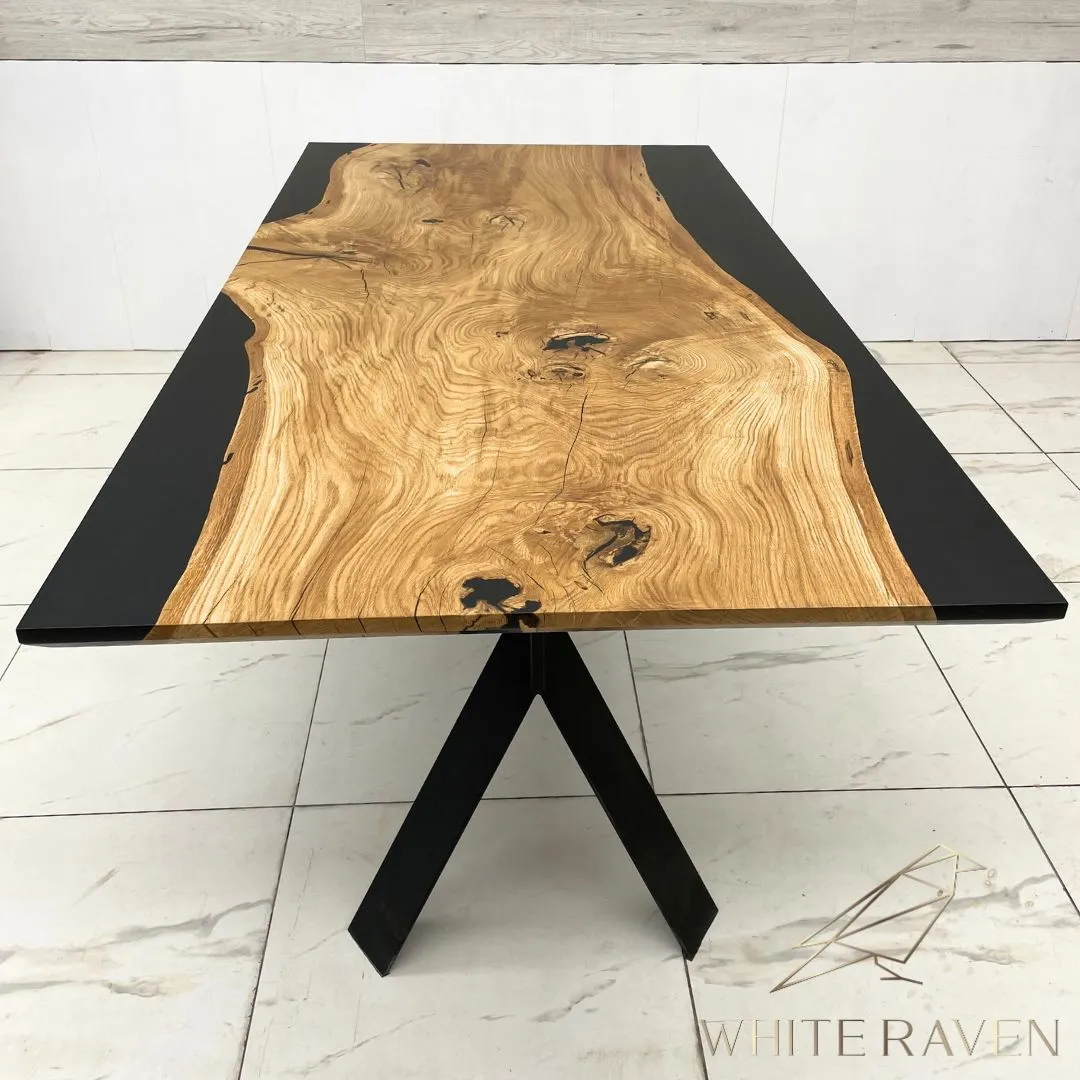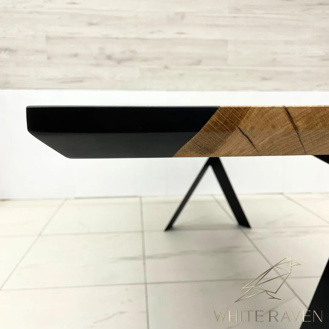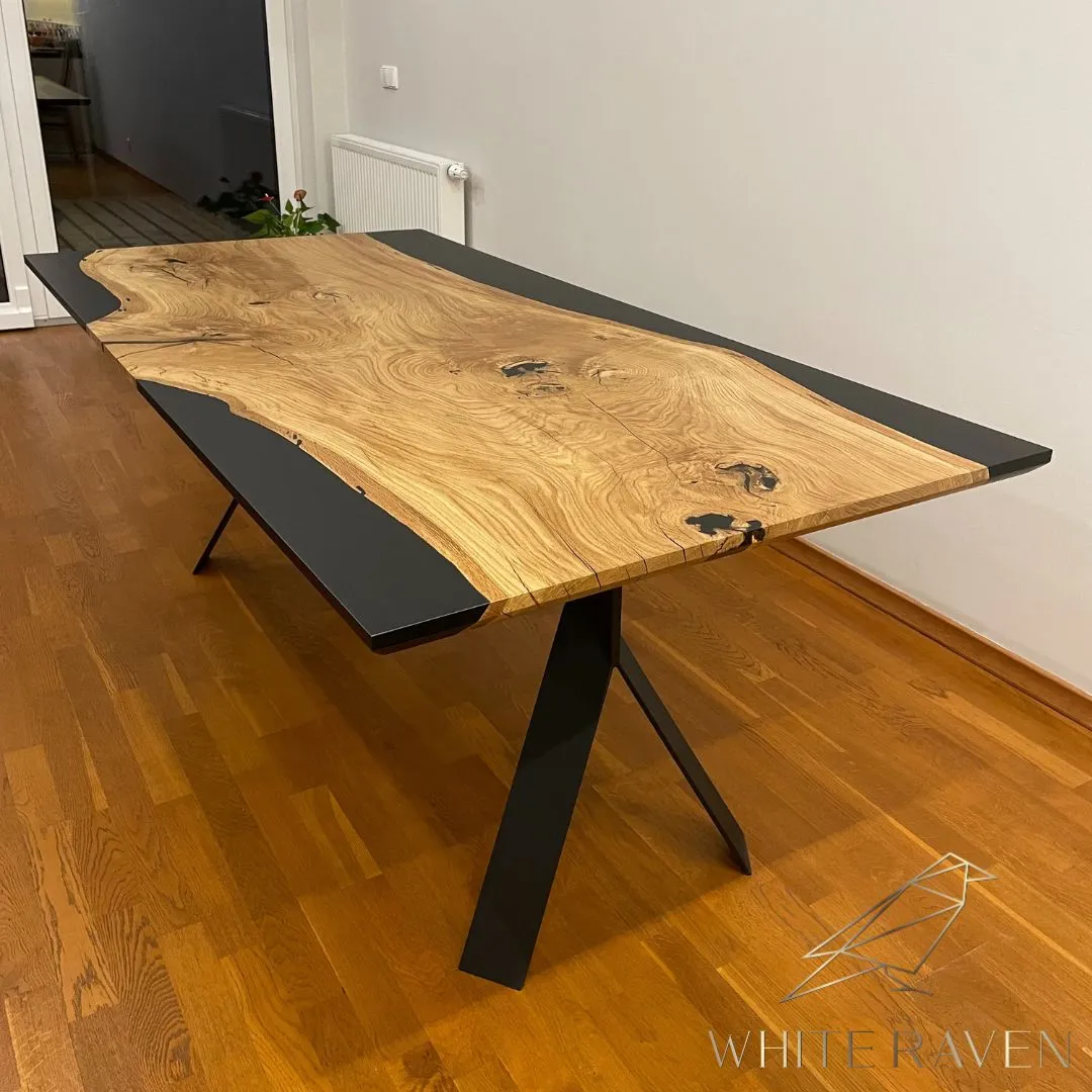 Odkryj stół do jadalni BLACK OAK, który łączy naturalne piękno drewna dębowego z nowoczesną surowością czarnej żywicy i stalowych nóg. To mebel, który stanie się centralnym punktem Twojej jadalni lub salonu – zachwyca elegancją, trwałością i niepowtarzalnym designem.