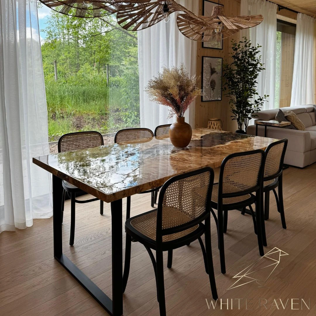 Każdy z naszych stołów ma swój indywidualny charakter – powstały z połączenia naturalnego usłojenia drewna i przezroczystej lub barwionej żywicy epoksydowej, tworzą niepowtarzalny wzór inspirowany naturą. Przede wszystkim to idealny wybór do jadalni, salonu lub biura, gdzie liczy się styl i oryginalność.