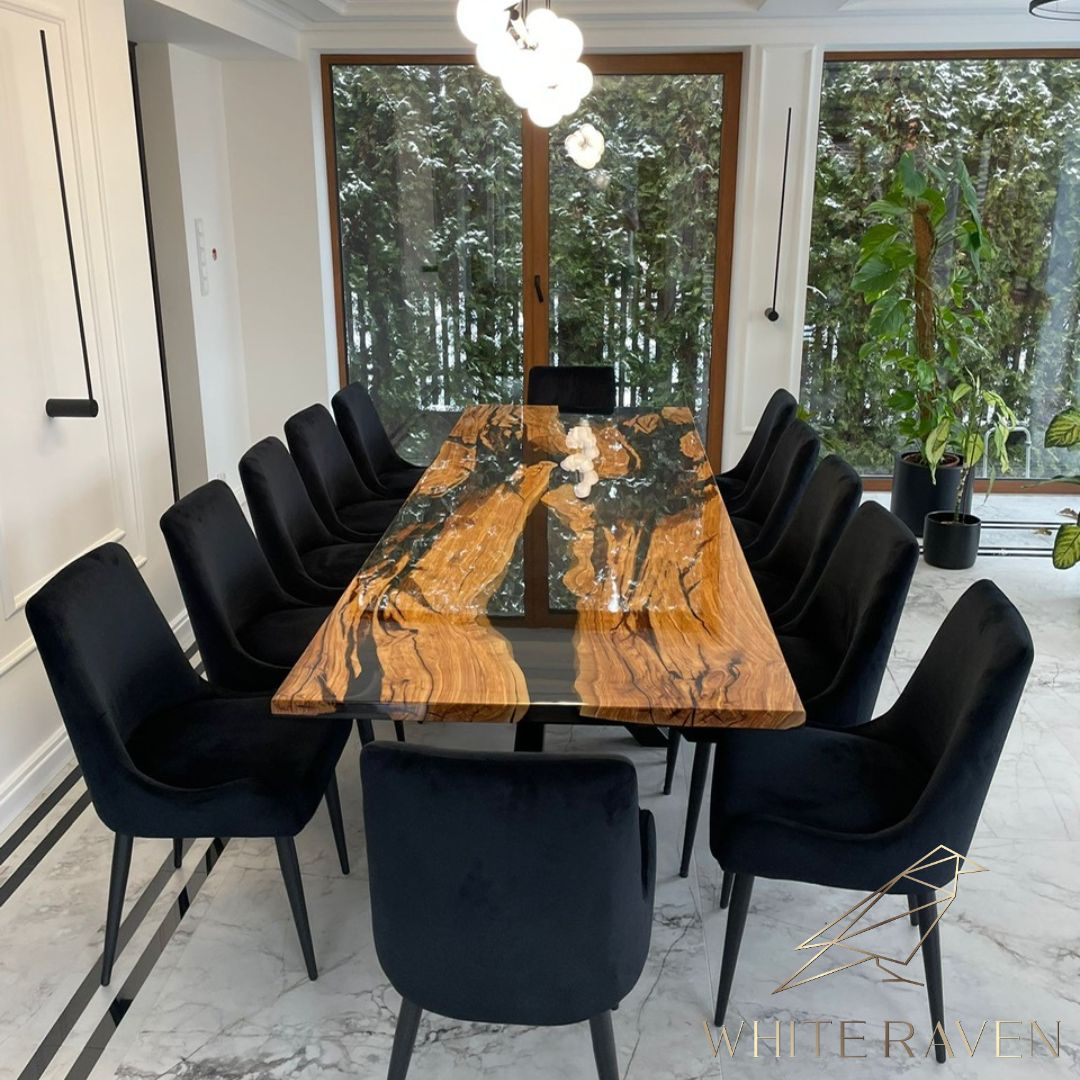Stół z drewna oliwnego i żywicy – nowoczesna elegancja do jadalni